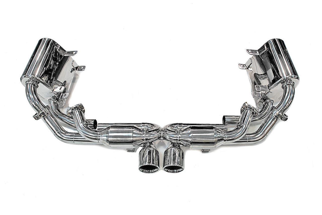 - System maintains the original 997 Carrera exhaust/muffler position but features longer outlet extensions with slip-on 3.5” polished tips which exit at the center of GT3-style bumpers
