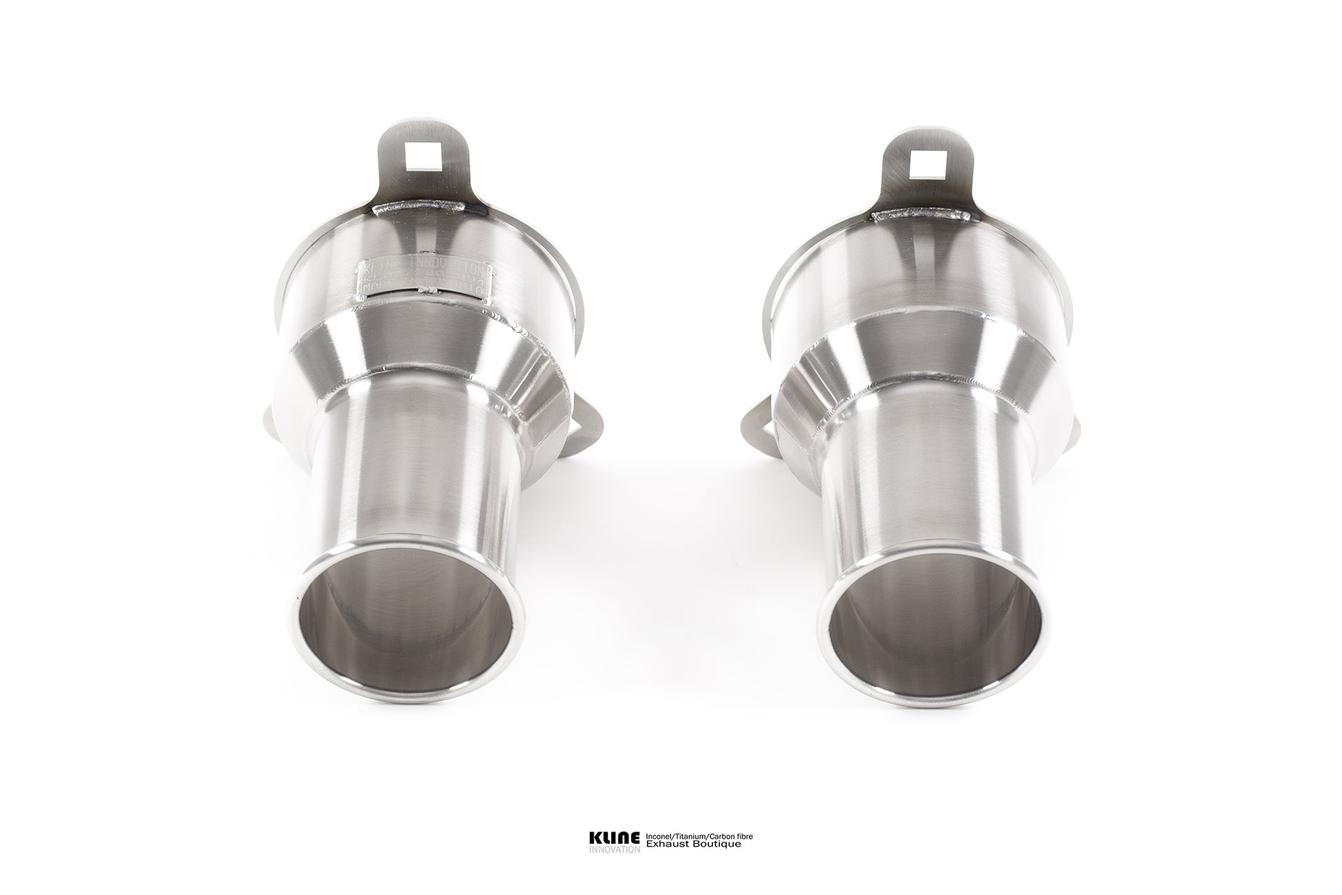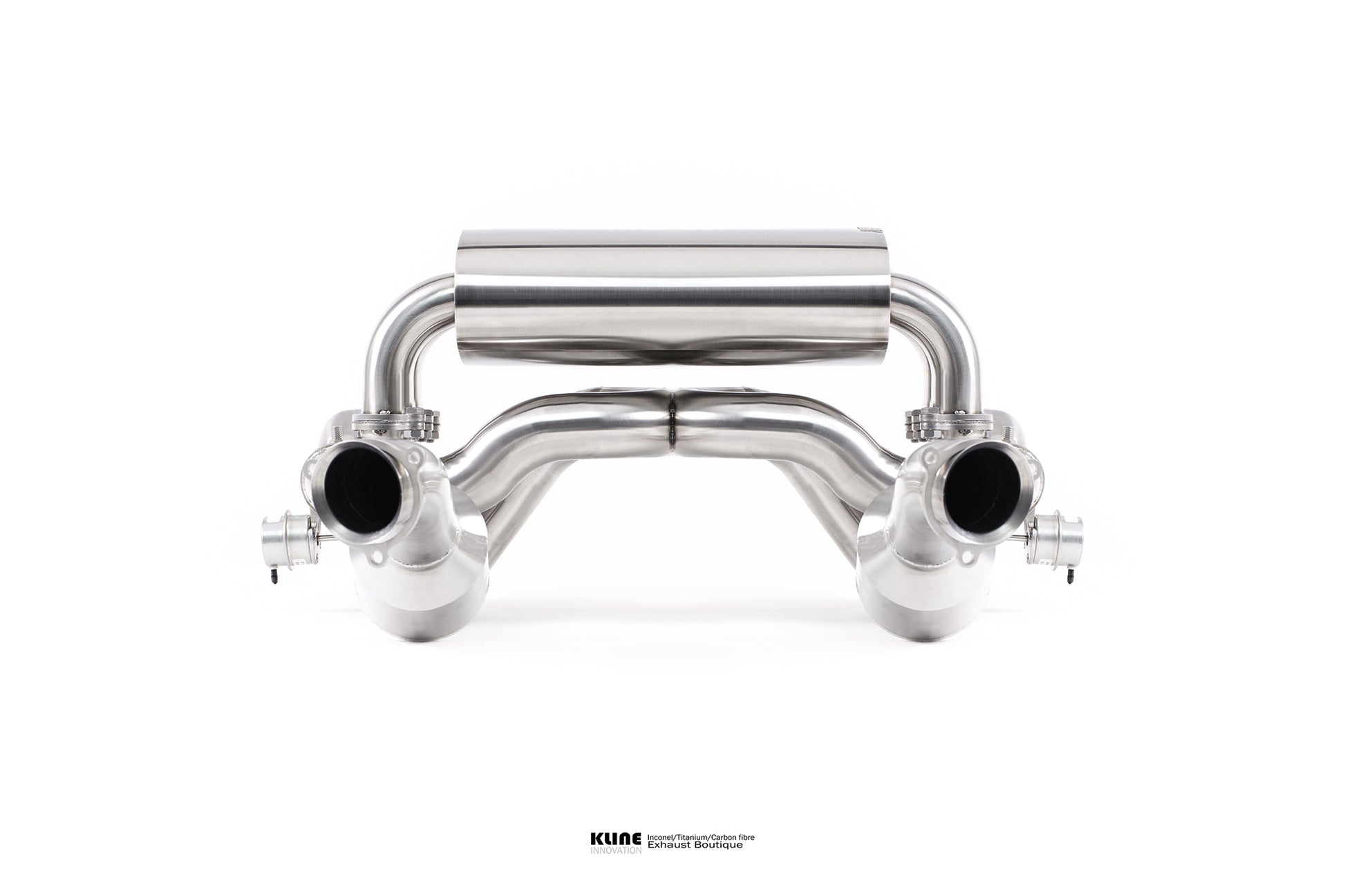 Available in full Inconel 625 (formula one grade) material. Weight valvetronic silencer section 6kg. De-cat pipes 1.2kg each, catalyst pipes 2.2kg each.