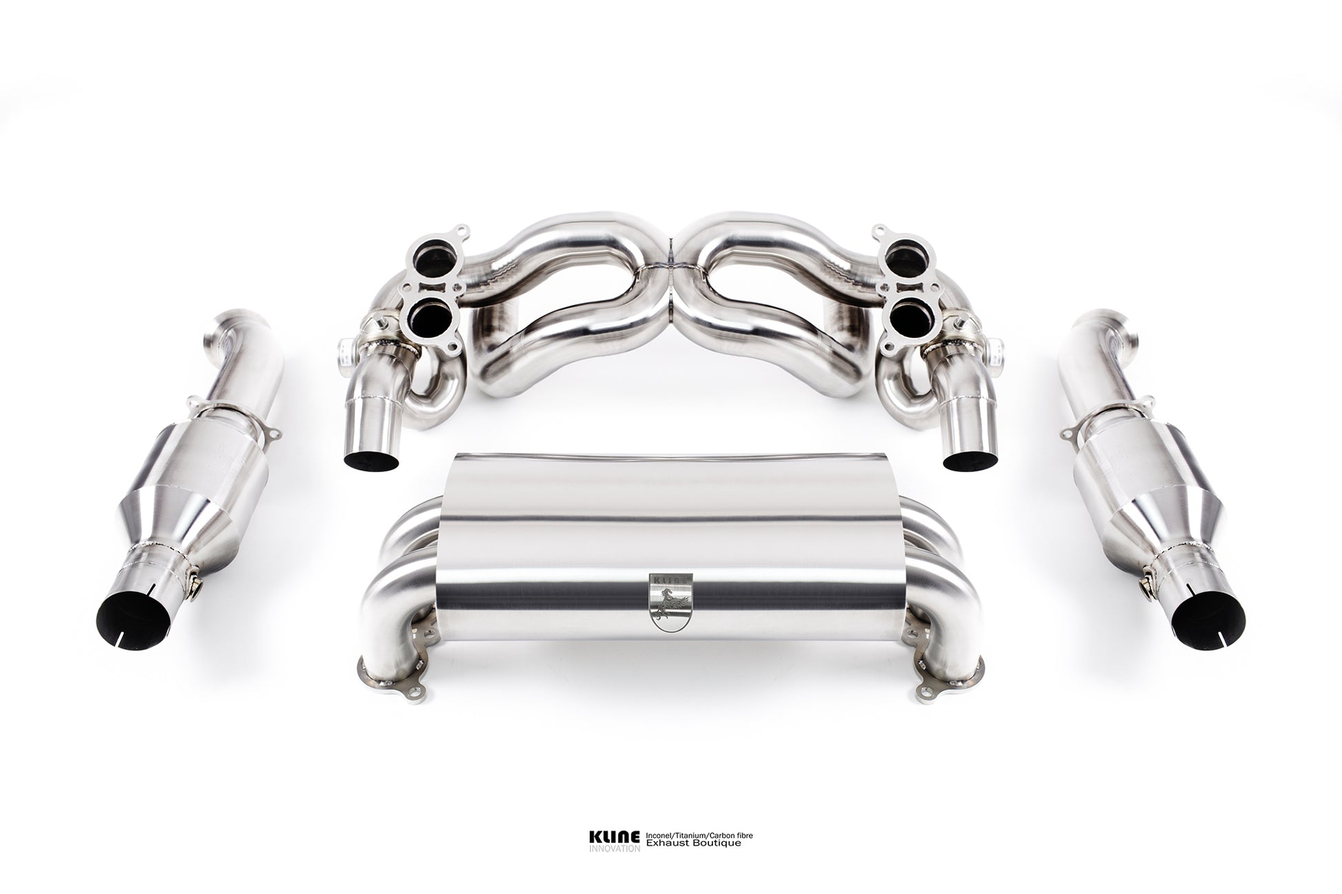 Starting at the drawing board, the first aspect to be upgraded, replacing the stock catalysts for high performance 100cpsi race catalysts, thus reducing the gas drag coefficient, and improving scavenge, and ultimately torque response and peak power figures.Replacing the heavy, cumbersome factory silencer, for our harmonically tuned silencer, we were able to enrich both bass and treble frequencies, as well as significantly reducing weight. The final, and perhaps one of the most important design features, unique to Kline. Our trademark tight radius laminar flow x pipe. The resulting sound is unbelievably smooth under light driving conditions, and a howling raucous high pitched incendiary vocal when you need it.