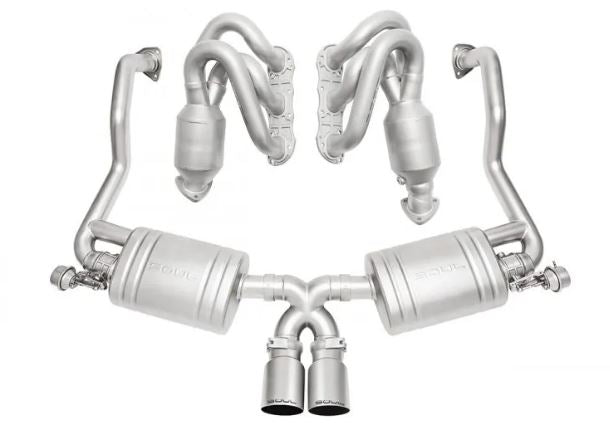 Expect a sophisticated sound with valves closed and a flat-six wail with valves open by pairing our Valved Exhaust System with Long Tube Street Headers for performance gains without a check engine light. Soul Performance Products Long Tube Street Headers are built around large diameter, free flowing HJS HD 200-cell catalytic converters with long tube runners for maximum gains in power, throttle response, and flat-six engine tone. With valves closed the exhaust tone is perfect for a daily driven car – have no worries about being fatigued by excessive volume or droning. Once the valves open, be prepared to seduce all who surround you with an intoxicating symphony as the full tone of the flat six makes it way out the straight-through exhaust flow path and exits through stylish tips of your choosing. We’re proud to offer you the perfect exhaust solution and back it up with an industry leading Lifetime Warranty.